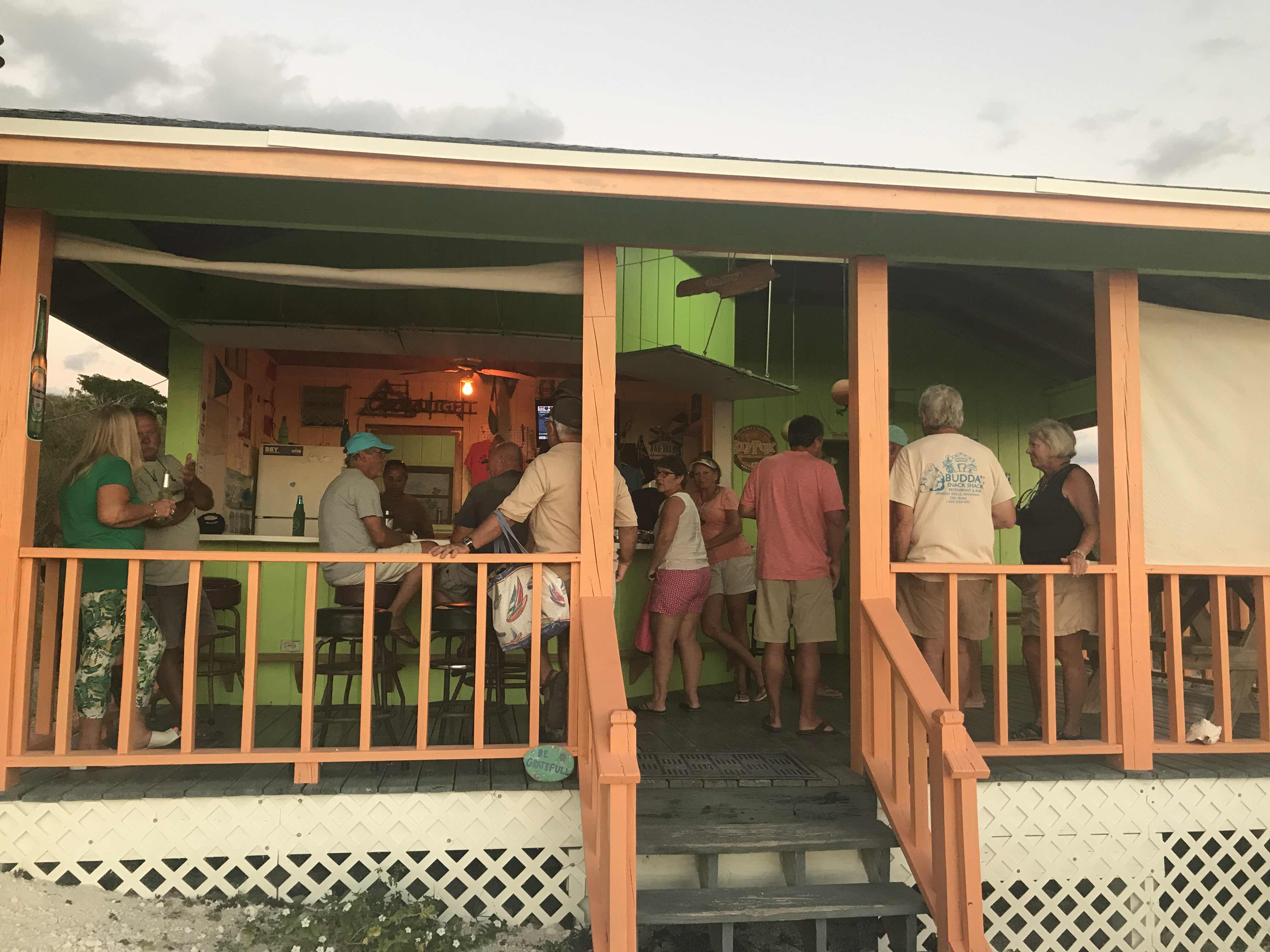 This evening we went to a happy hour at Sou’ Side Bar and Grill. There was a very nice mix of cruisers and people who live in homes on the island. We reconnected with people we have met before and also met some new folks. Holly from Hampshire Rose baked a delicious pineapple upside down rum cake as a birthday cake for Sou’ Side’s owner, Tyrone (aka Tiger).