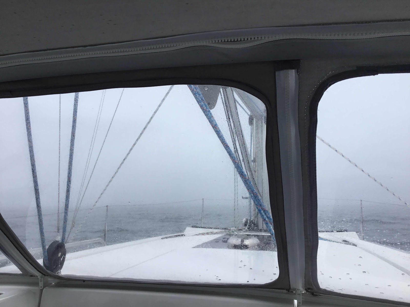 It was really foggy when I came up on deck to relieve George at 6 am and remained foggy all day. We were both happy to have AIS, radar and radar reflectors so that we could see other boats and they could see us in that heavy fog.