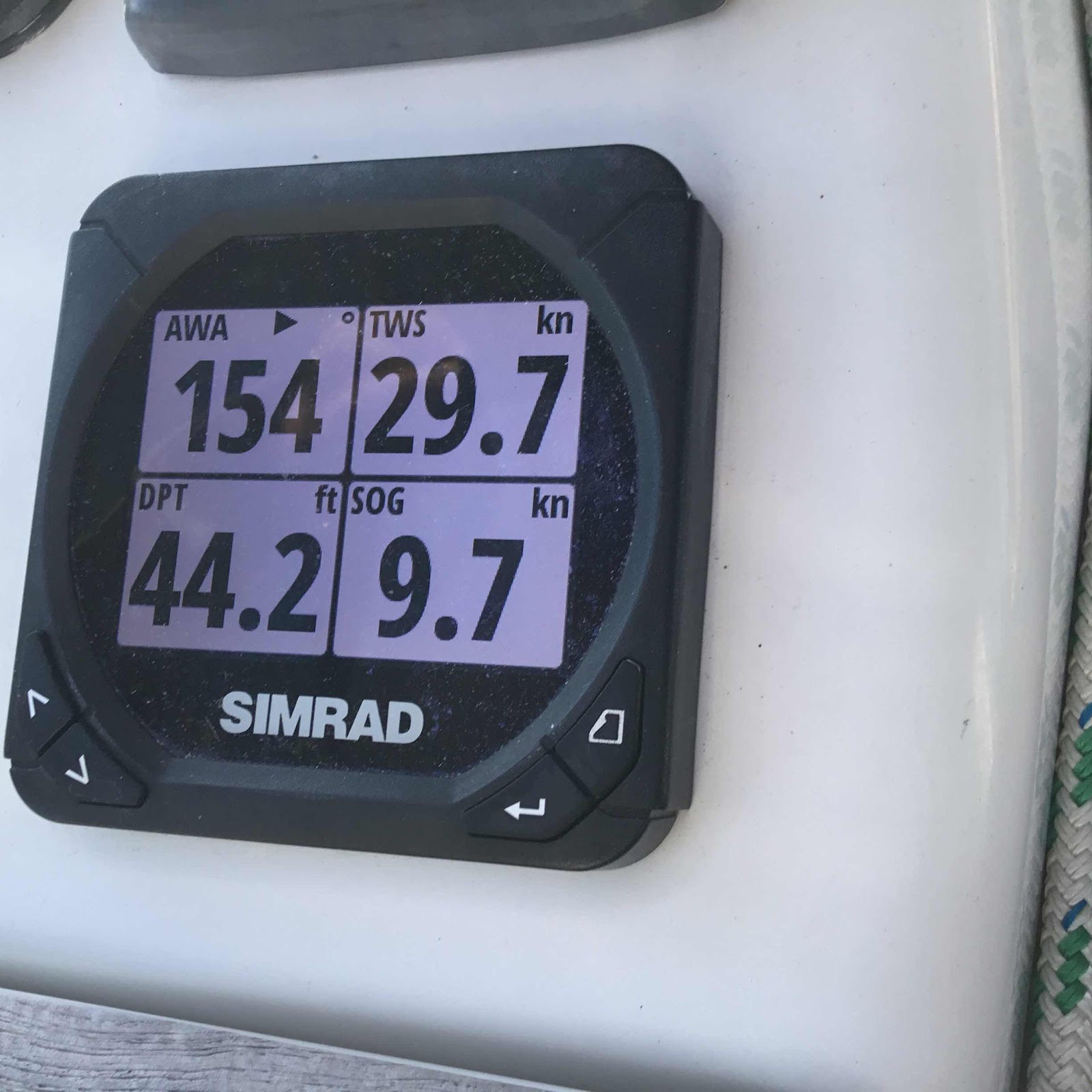 The good part of winds close to 30 knots is we were moving at 9.7 knots!  That is fast for Breeze On.