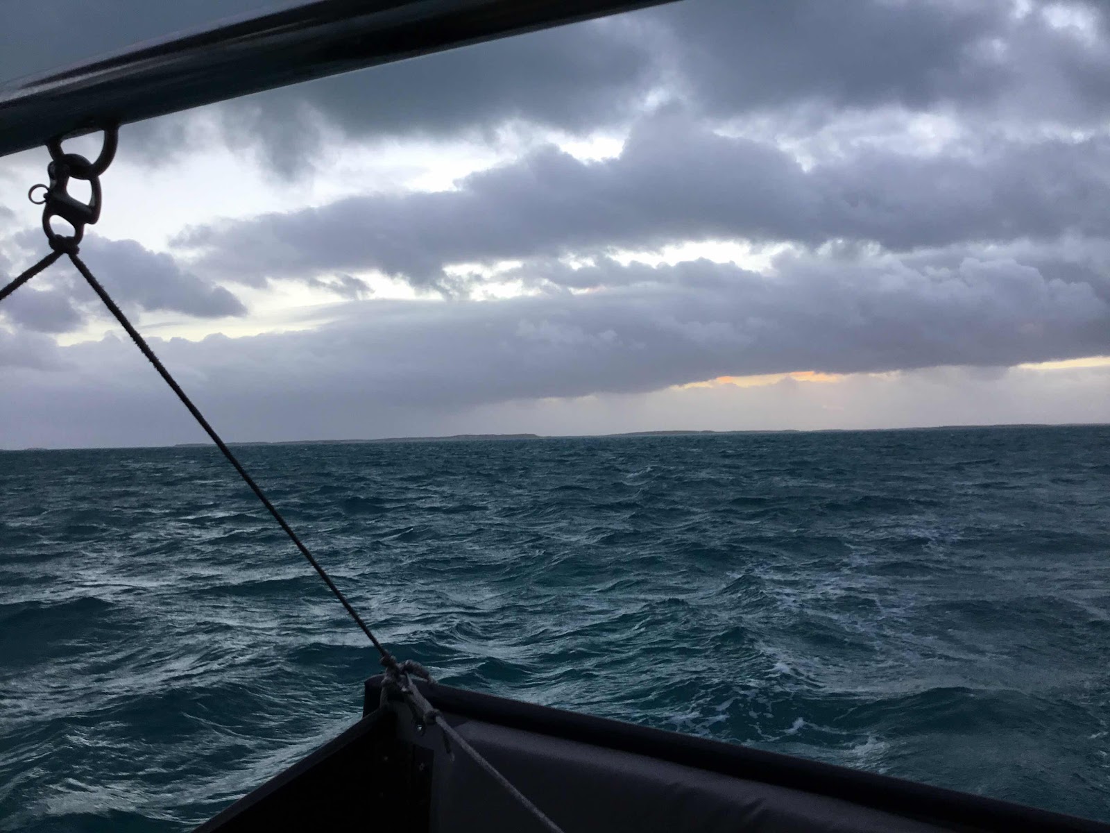 We raised the anchor at 6 am this morning and left the Hog Cay anchorage. It is 55 miles to our destination of Water Cay, Jumentos so we wanted to get an early start.  We put two reefs in the main to sail in 18-25 knots of wind on a beam to broad reach and we are zipping right along at 6.5 to 7 knots. I am hoping to get this post out before we run out of cell service.