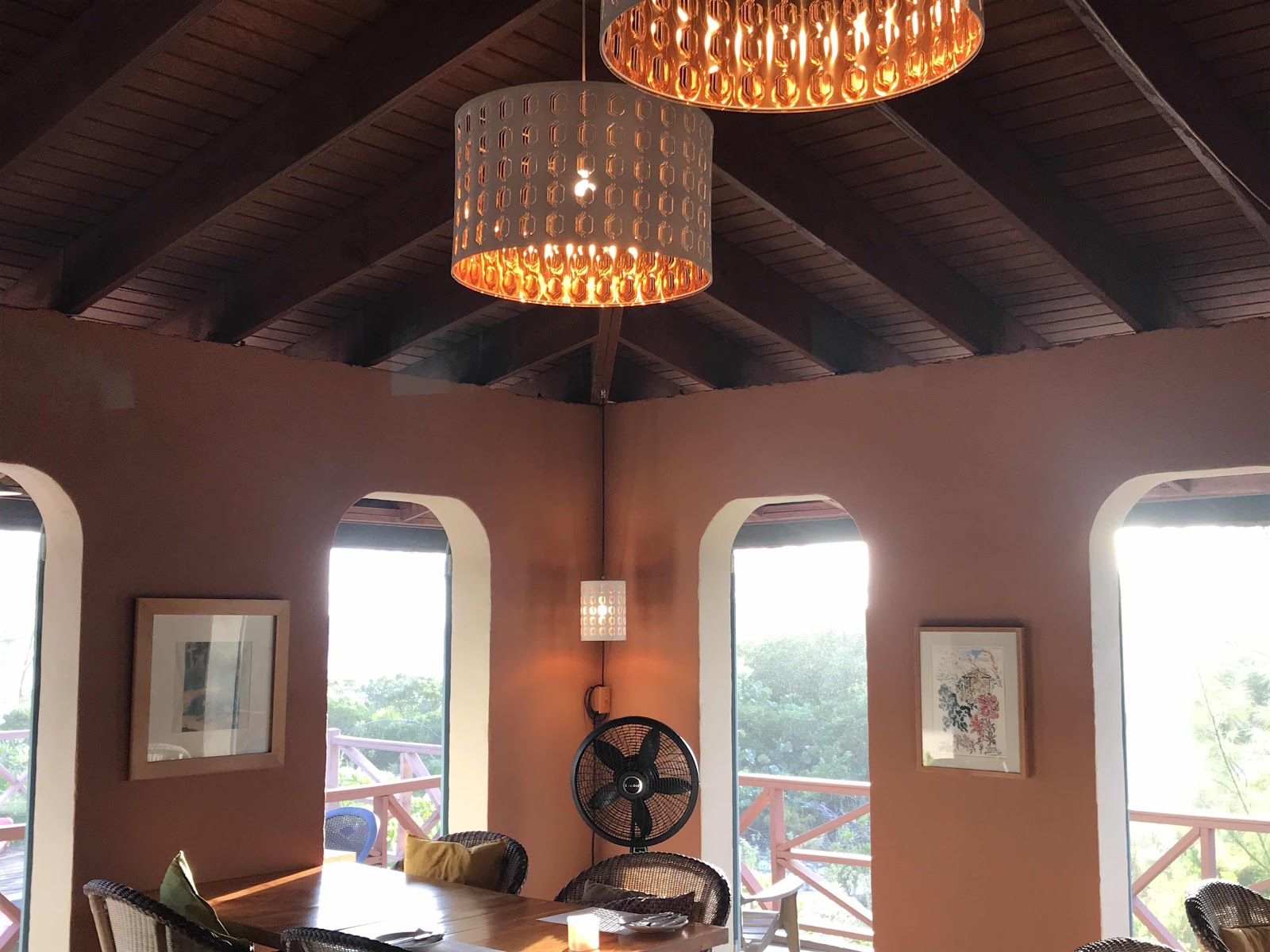 Our daughter and son-in-law left this morning after visiting aboard Breeze On. They are delightful company and we so enjoyed spending time with them. We picked up a rental car yesterday and drove to Chez Pierre for dinner. We had talked about it so much that we were afraid they would be disappointed with the actual experience. They were not disappointed. I had forgotten how large the portions were at Chez Pierre and we were all stuffed when we left, and we brought leftovers back. It was dark when we returned to the dinghy and the tide was extremely low (because of the full moon). I managed to jump down into the dinghy and George brought me back to Breeze On before returning for Pam and Brad. On the way out of the cove the dinghy went aground and George hopped out to push it through the mud. When he returned for Pam and Brad he couldn’t find the entrance to the cove in the dark—the moon was not yet up—so he flashed a light hoping they would get the message to flash a signal in return. They did and he found the cove. He turned the engine off and rowed the dinghy through the shallow entrance of the cove. After we were all back on Breeze On we played Bananagrams and Mexican Train. It has been great fun playing games with them each evening. We already miss them.