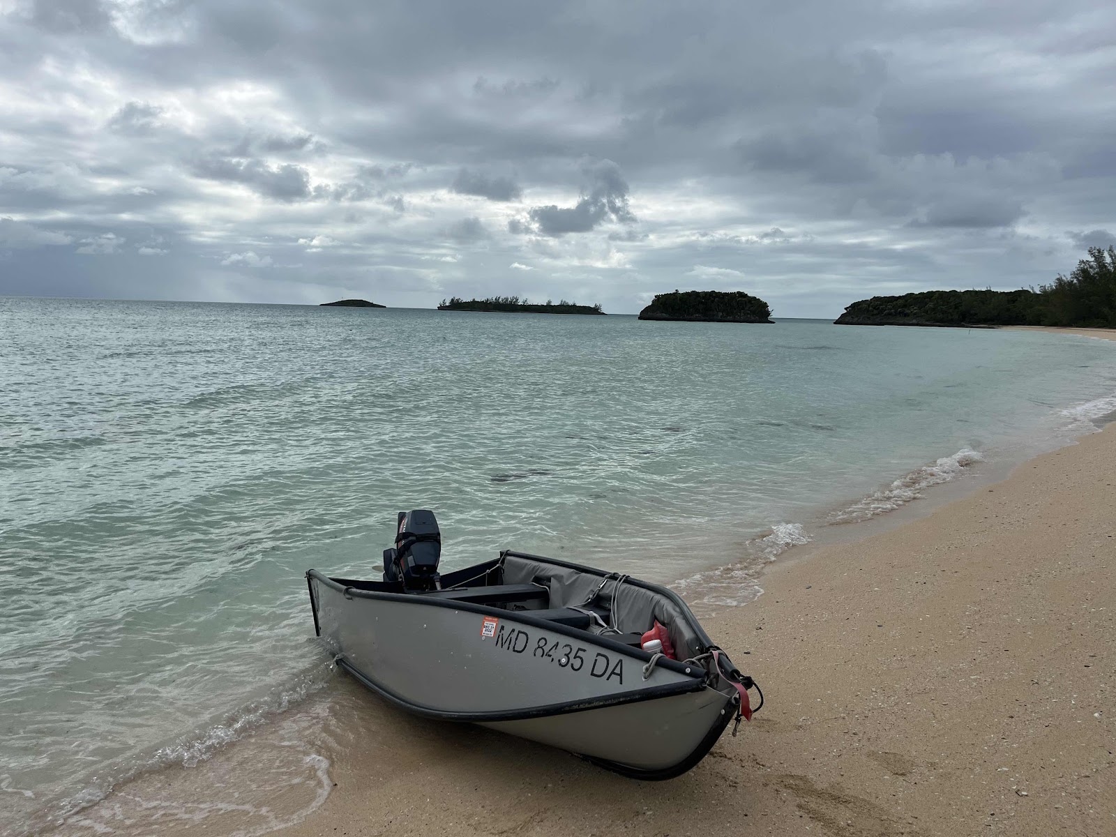 Breeze On is anchored 1/2 mile away behind the Pineapple Cays. There were squalls all around us but we were spared.