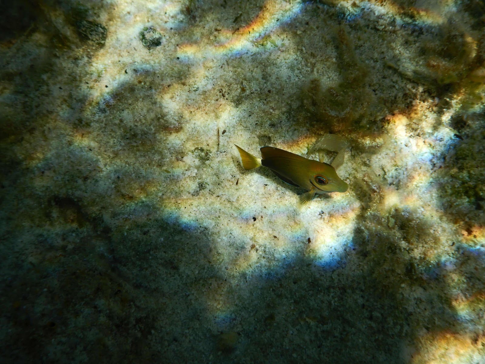 We did see colorful fish. This is a juvenile beaugregory, a type of damselfish.