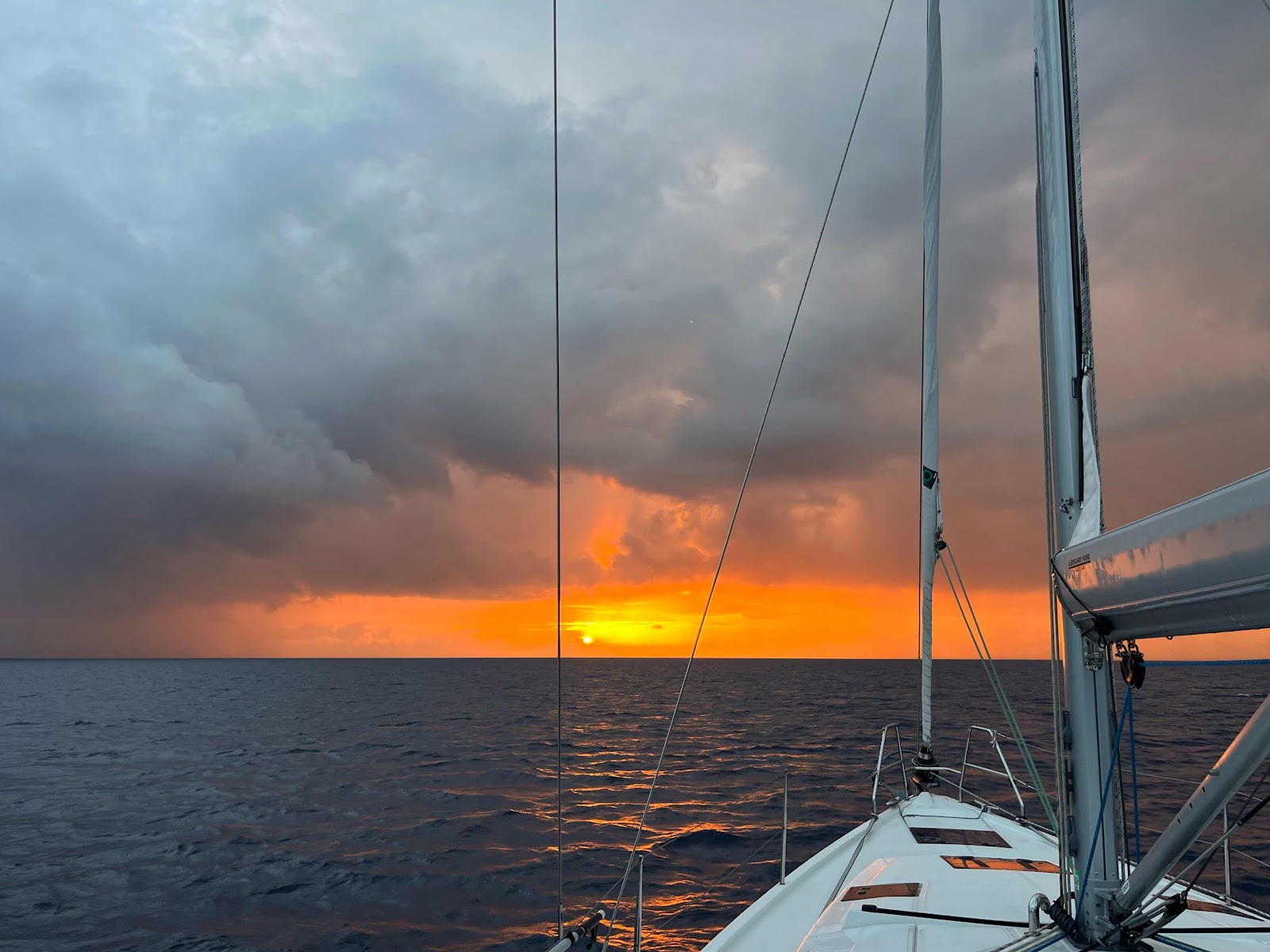 Sunrise surrounded by squalls as we exited Emerald Bay.
