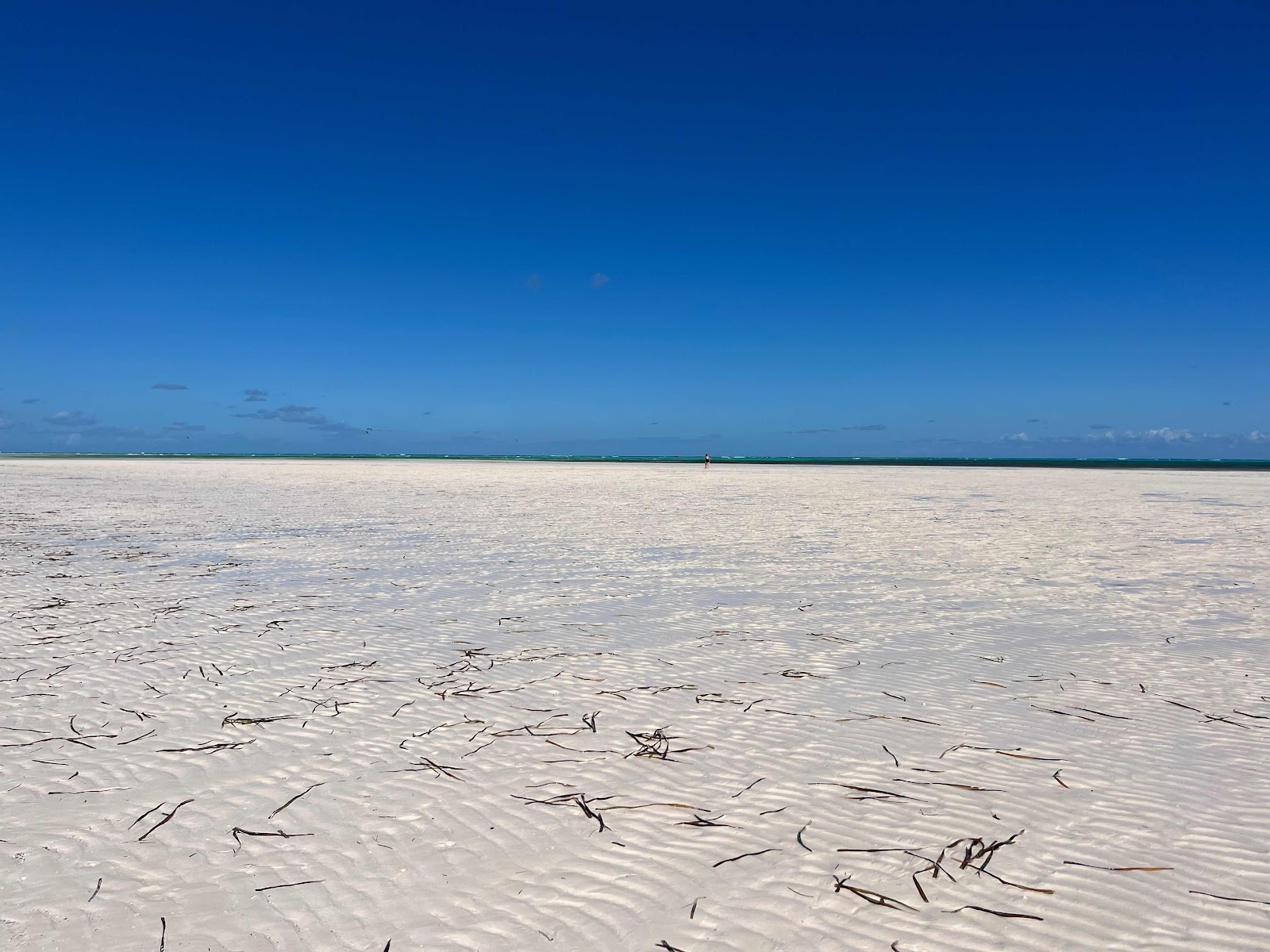 This morning we dropped our mooring lines and left the Spanish Wells harbor to sail seven miles west to Royal Island. We opted to drop our anchor at the west end of the Royal Island rather than the inner harbor we visited last fall. Since we don’t plan to leave this area until tomorrow afternoon, our motivation to leave Spanish Wells was mostly a desire for different scenery. We did appreciate the ease of going ashore while we were on the mooring ball. Yesterday we walked across the island to the beach on the N side. Since it was low tide the sandbar extended for quite a long distance. If you zoom way in you can see kite boarders in the distance.
