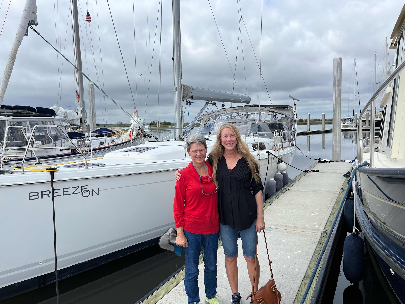 It can be frustrating waiting for weather windows. It looks like we will be waiting in Brunswick at least another week, maybe longer. The silver lining, though, is the people who have come to visit. Today we were visited by my long-time friend, Joan. She remembers meeting me just before first grade and we remained classmates and friends through college at Florida State. My brother is scheduled to come see us in a few days. These visits from friends and family are making our time here truly special.