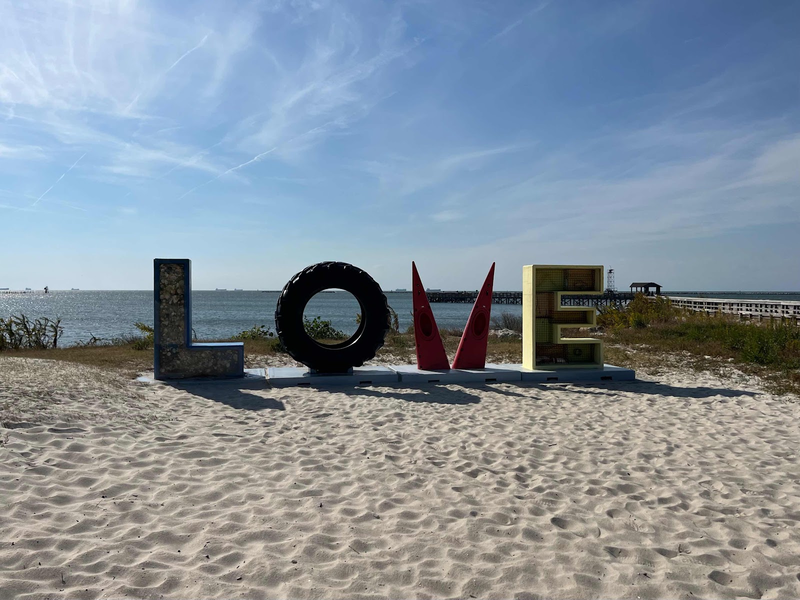 The town’s “Love” sign overlooking the Chesapeake Bay.