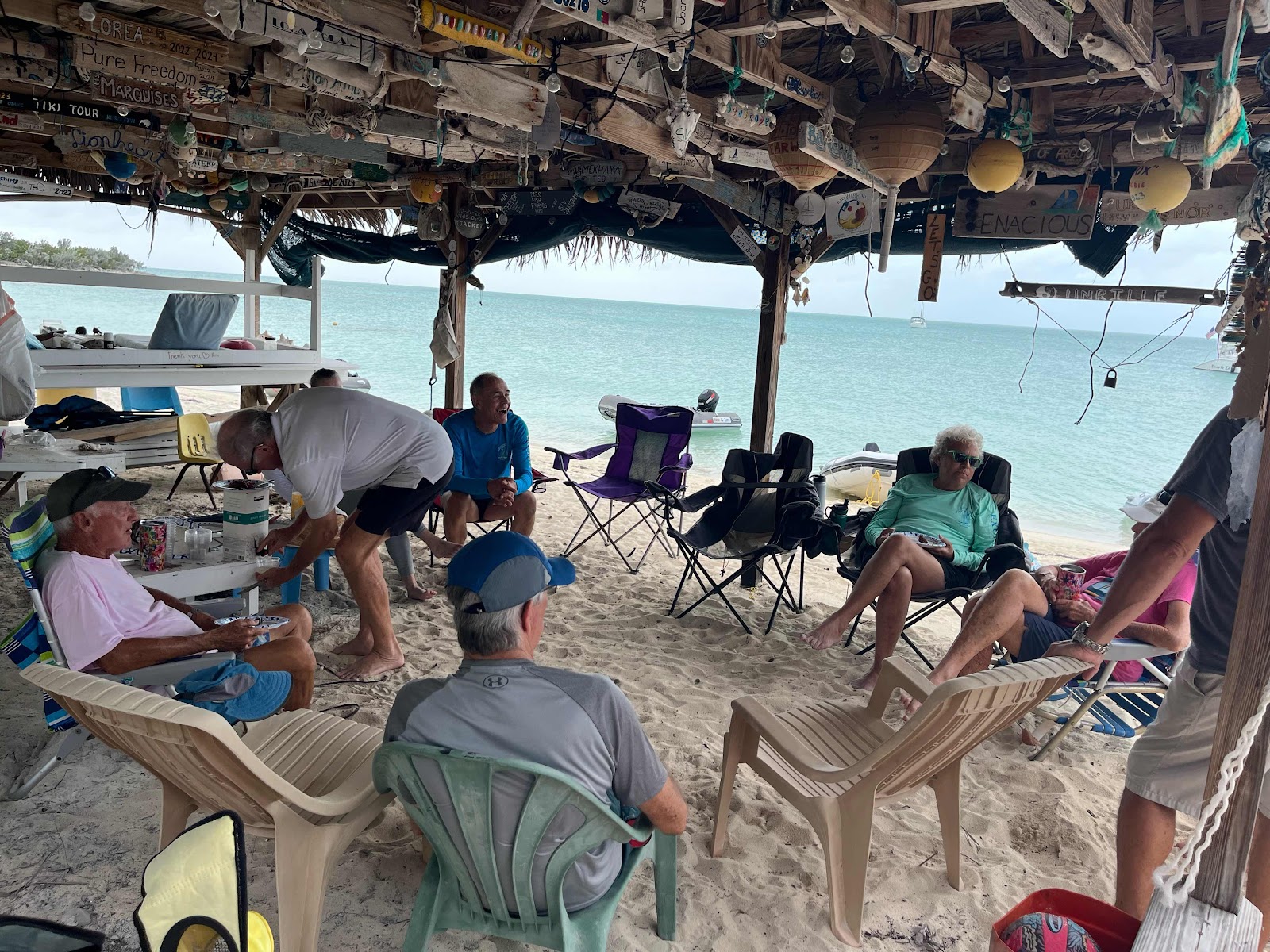 Yesterday we celebrated Christmas by sharing a Christmas potluck on the beach with cruisers from the four other boats in the harbor. It was lovely and the food was delicious. Just the right number of people to make it festive yet intimate.