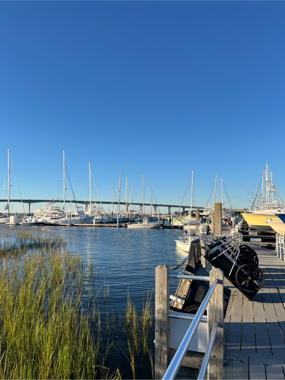 The sun finally come out and stayed out for several hours today! This morning I made enough passage meals for two days. Later on we walked into town with our new friends on Mawaena, another (albeit, much newer) Hanse. We gave them a tour of Breeze On before going to lunch at Beaufort Grocery. We enjoyed getting to know them and trading sailing stories.