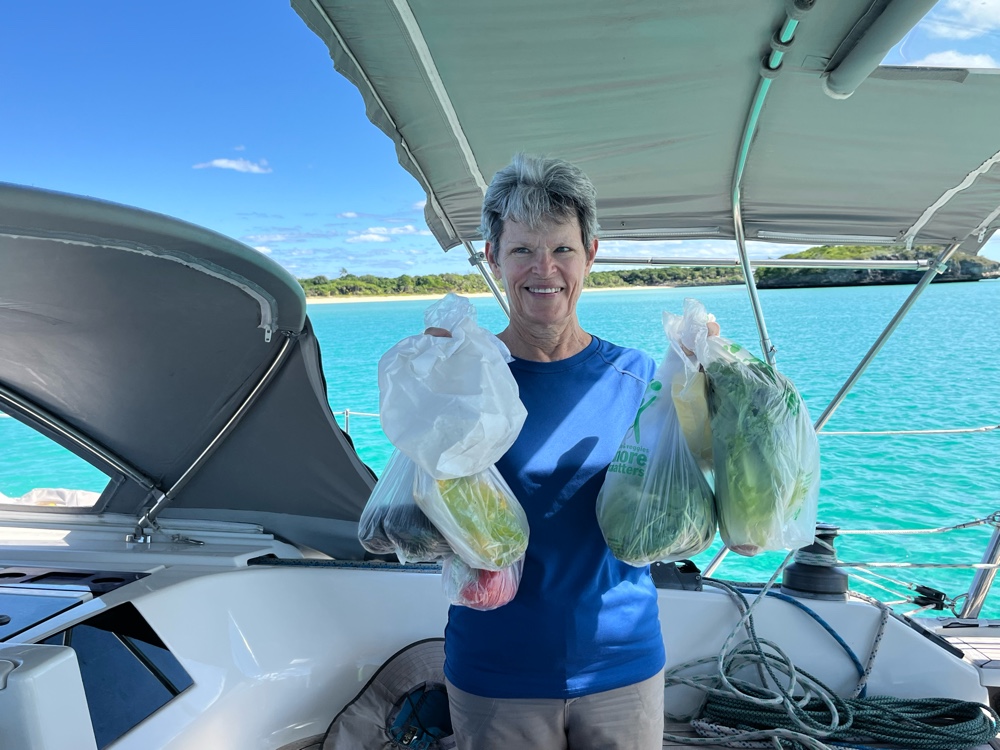 Since our refrigerators didn’t have a lot of room, I held back on yesterday’s purchases from Eleuthera Island Farm. Nevertheless, I was quite pleased with our haul. As a bonus, we happened to be there on one of the two days each week when fresh cinnamon buns are available!