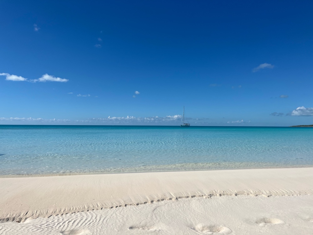 We enjoyed our time at Little Bay although we have moved on after spending just two nights. This morning we had a nice sail south in the shallow waters west of the islands before we had to go through Galliott Cut to the deeper waters of Exuma Sound. There the conditions were much better than they had been earlier in the week and we had another nice sail to William’s Bay, another favorite anchorage.