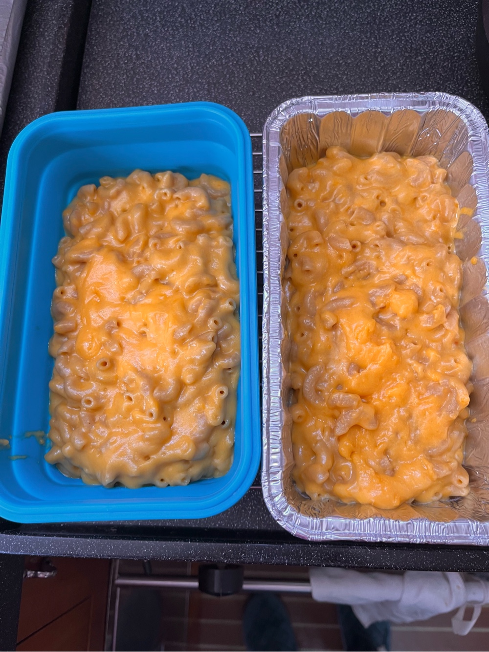 The mac & cheese on the right will go in the oven tomorrow. We ate the one on the left today.