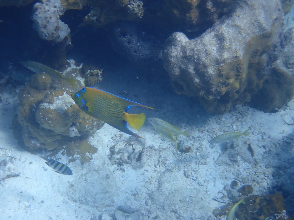 Queen angelfish with a sargent major and some grunts.
