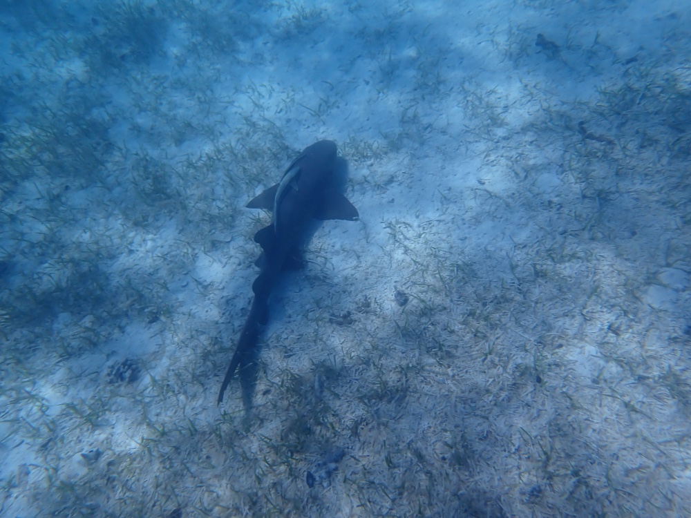 Large nurse shark with two remoras on its back. Shortly after this photo was taken it swam away, then returned.