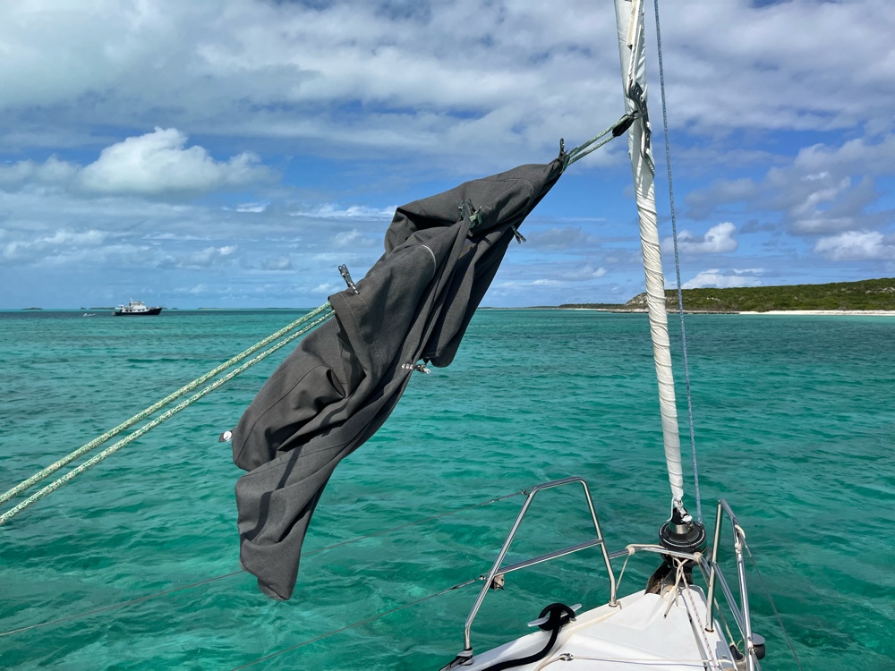 Today was  laundry day. In addition to clothes and towels, we washed the salty cockpit cushion covers.