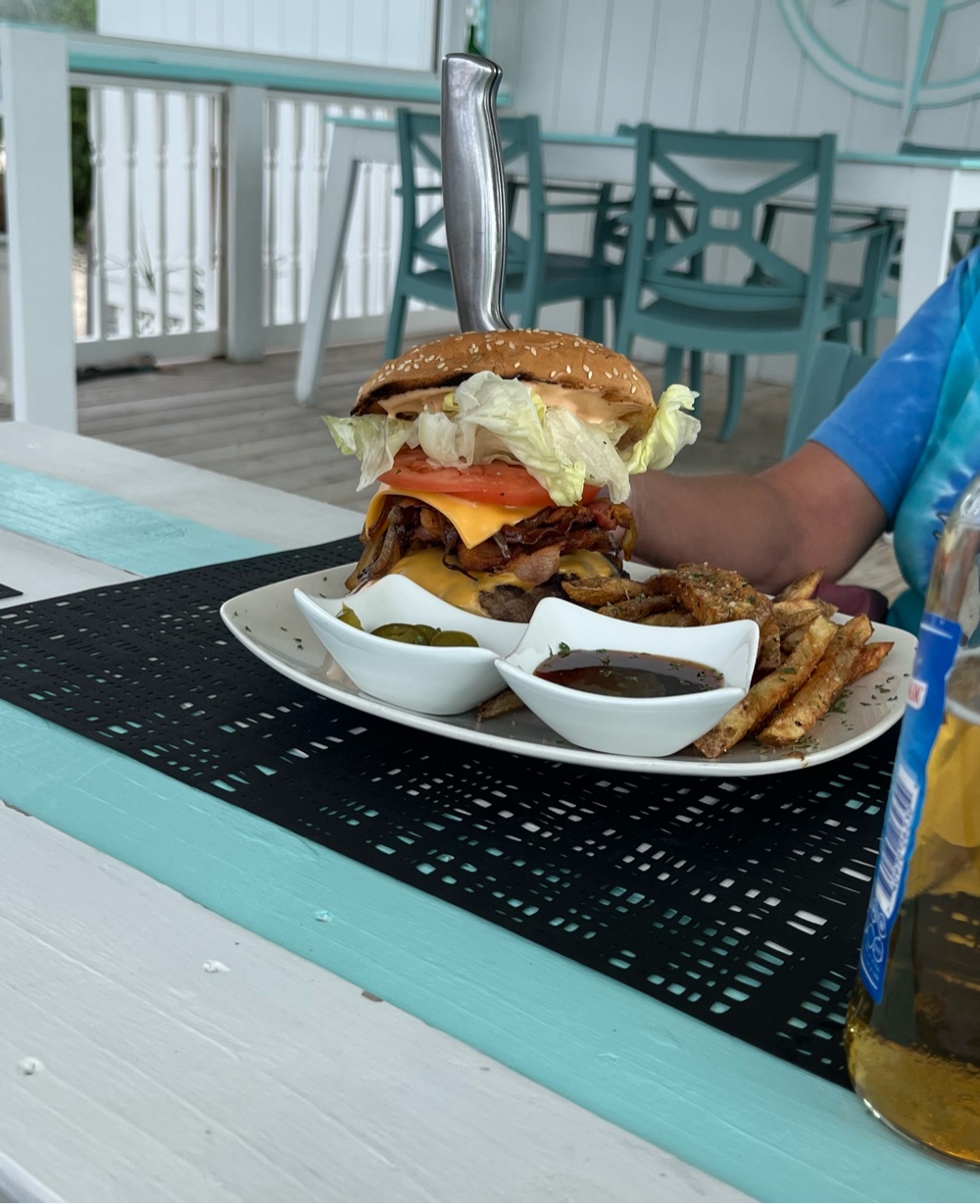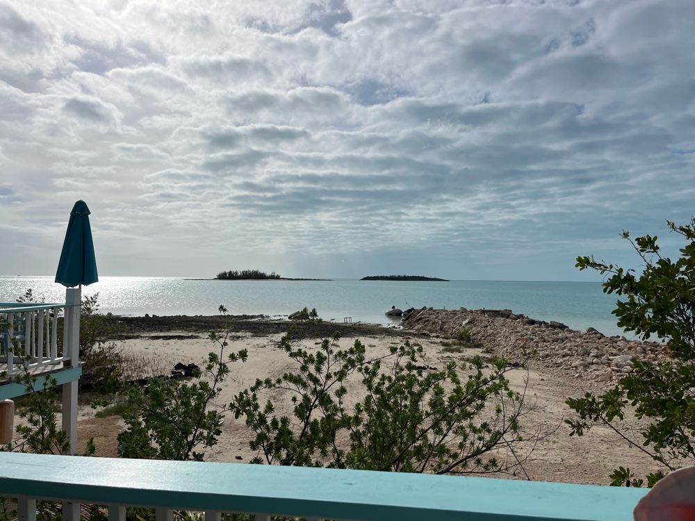 After stealing an idea from Dee and Ron we decided to leave George Town yesterday at noon, taking advantage of the SW wind to sail east to Thompson Bay, Long Island. The conditions were great and even allowed us to turn the engine off and sail with just our very small jib. We arrived about a half-hour street sunset. Thompson Bay is wide open to the SW and, although the anchorage was somewhat bouncy, it was tolerable. The anchorage calmed down after the wind moved further to the north overnight.