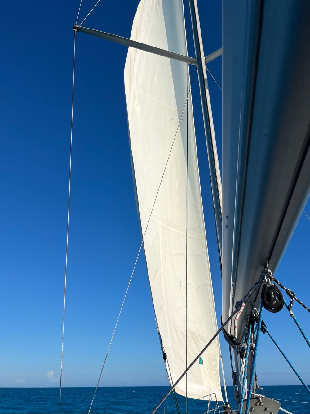 It was a pleasure to be able to turn the engine off and sail with the jib. We won’t be using the mainsail until George replaces the feeder track.
