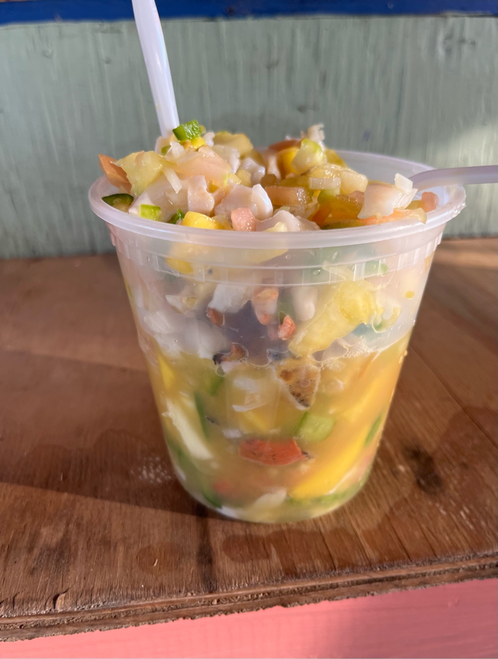 When we were chatting with the photographer, Yontalay Bowe-Kirkendall, a few days ago we learned that there were some plantation ruins a very short distance from where we stood. She also told us that there were once 30 plantations owned by British loyalists on Cat Island. Yesterday morning we visited the ruins of the Henry Hawkins Armbrister Great House. After that we stopped at Olive’s Bakery for some delicious baked goods. Later in the day we went back to shore, hoping to get some tropical conch salad from Duke’s Conch Stand but he was out of pineapple and mango. The supply ships do not run for two weeks over the holidays so it is not usual for supplies to run low this time of year. Duke was able to get the pineapple and mango today so we had our tropical conch salad. It was worth the wait.