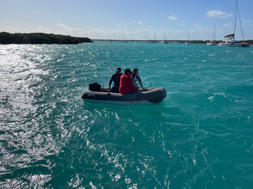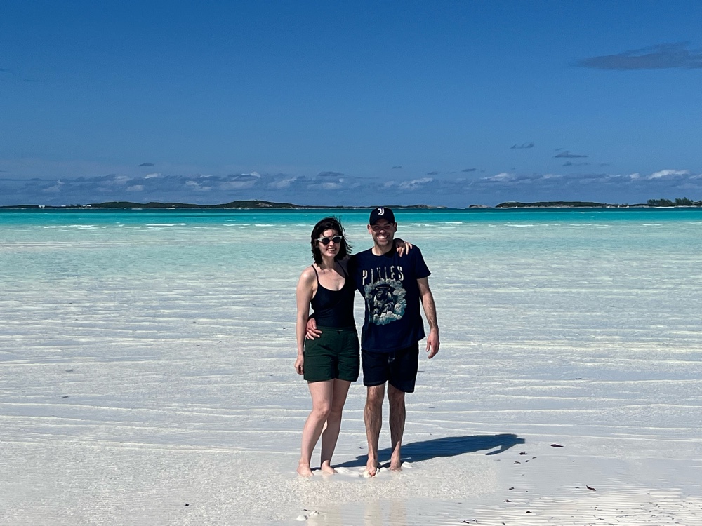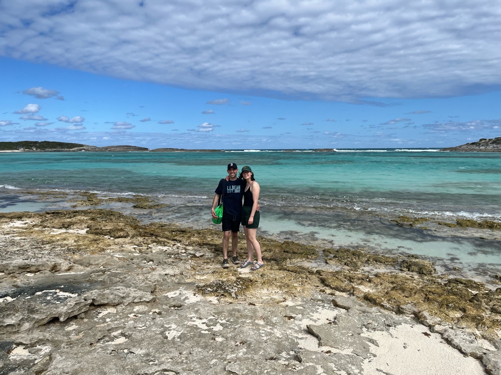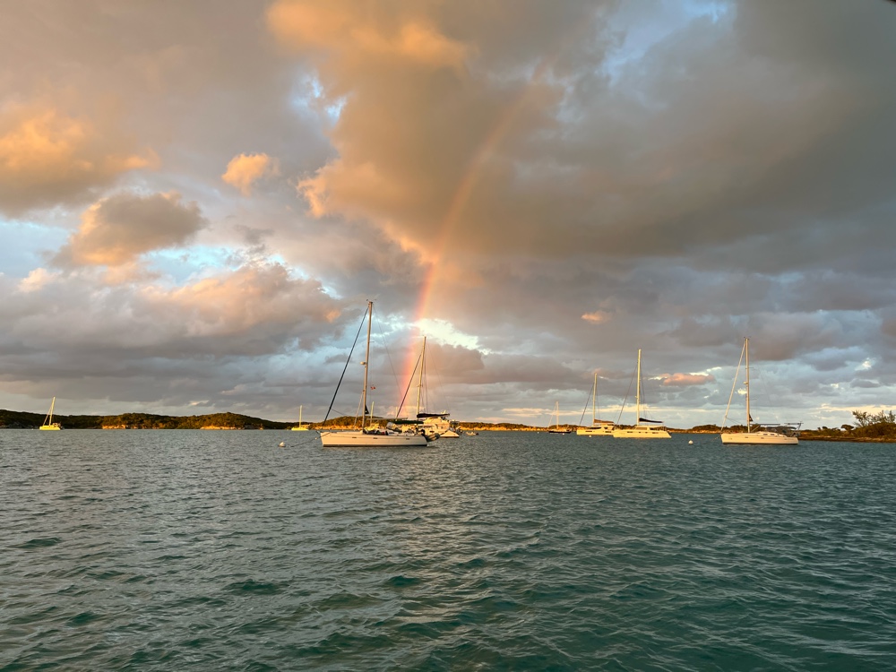 We had a wonderful time this week with our daughter and son-in-law. As often happens, we had the worst weather of the winter so far, but they were great sports about it. Granted, even though it seems cold to us it is much warmer here than their home in Massachusetts. We spent a few nights near Chat ‘n Chill where we went for a hike around the southern end of Stocking Island then lunch at Snappy Turtle. Next we moved over to Red Shanks for better protection from the W and NW winds. From there George took Pam and Brad over to the Man ‘O War Cay sandbar at low tide. Then, before returning to Breeze On, they did a reconnaissance run over to Brown’s Marine where their taxi was to pick them up this morning. We enjoyed games of Mexican Train and spent time planning our upcoming trip to England and Scotland to celebrate our 50th anniversary this year.