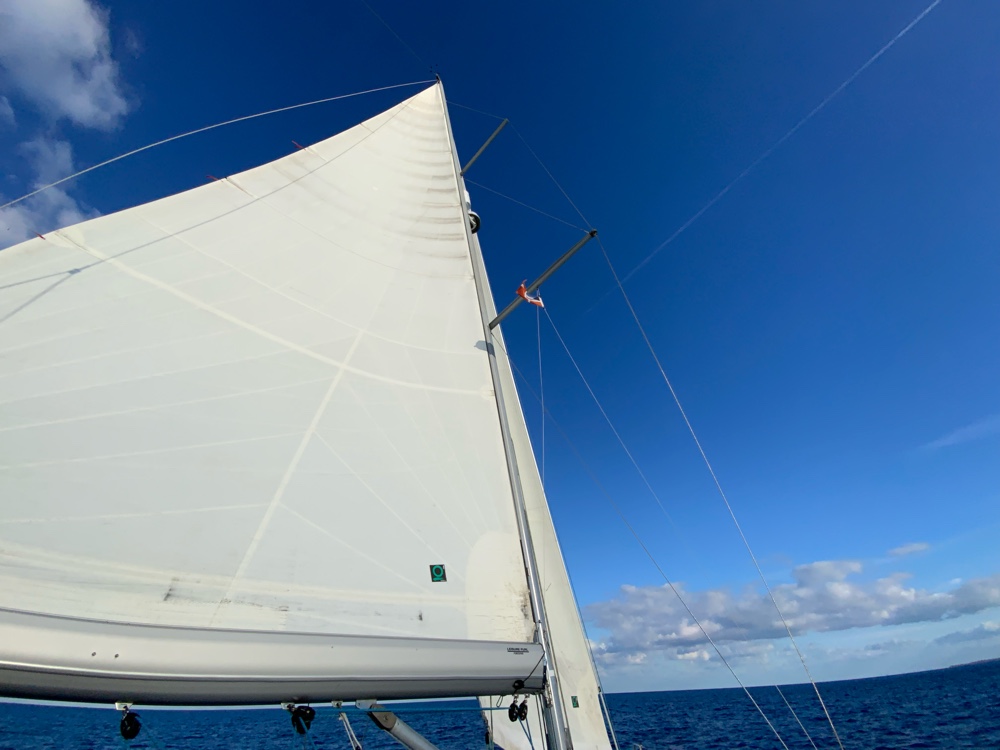 Today we had a lovely sail from Long Island to Old Bight, Cat Island. Once again we appreciated being able to use the mainsail. We initially had seas of five feet in the deep water of the Atlantic Ocean but because the waves were spread ten seconds apart the ride was quite comfortable.