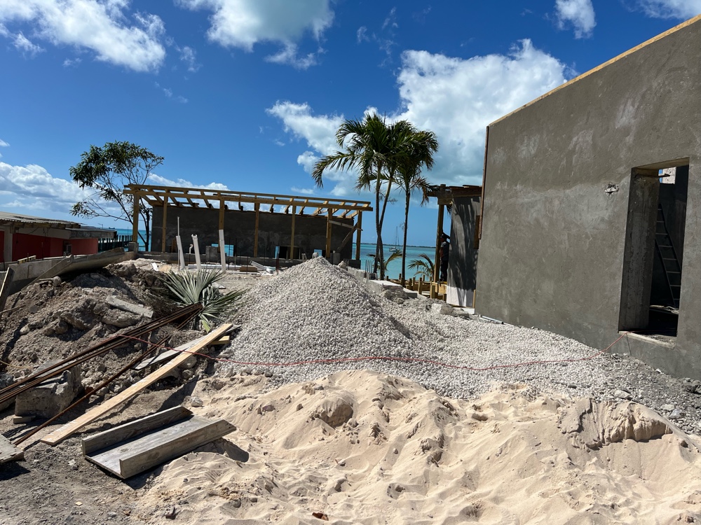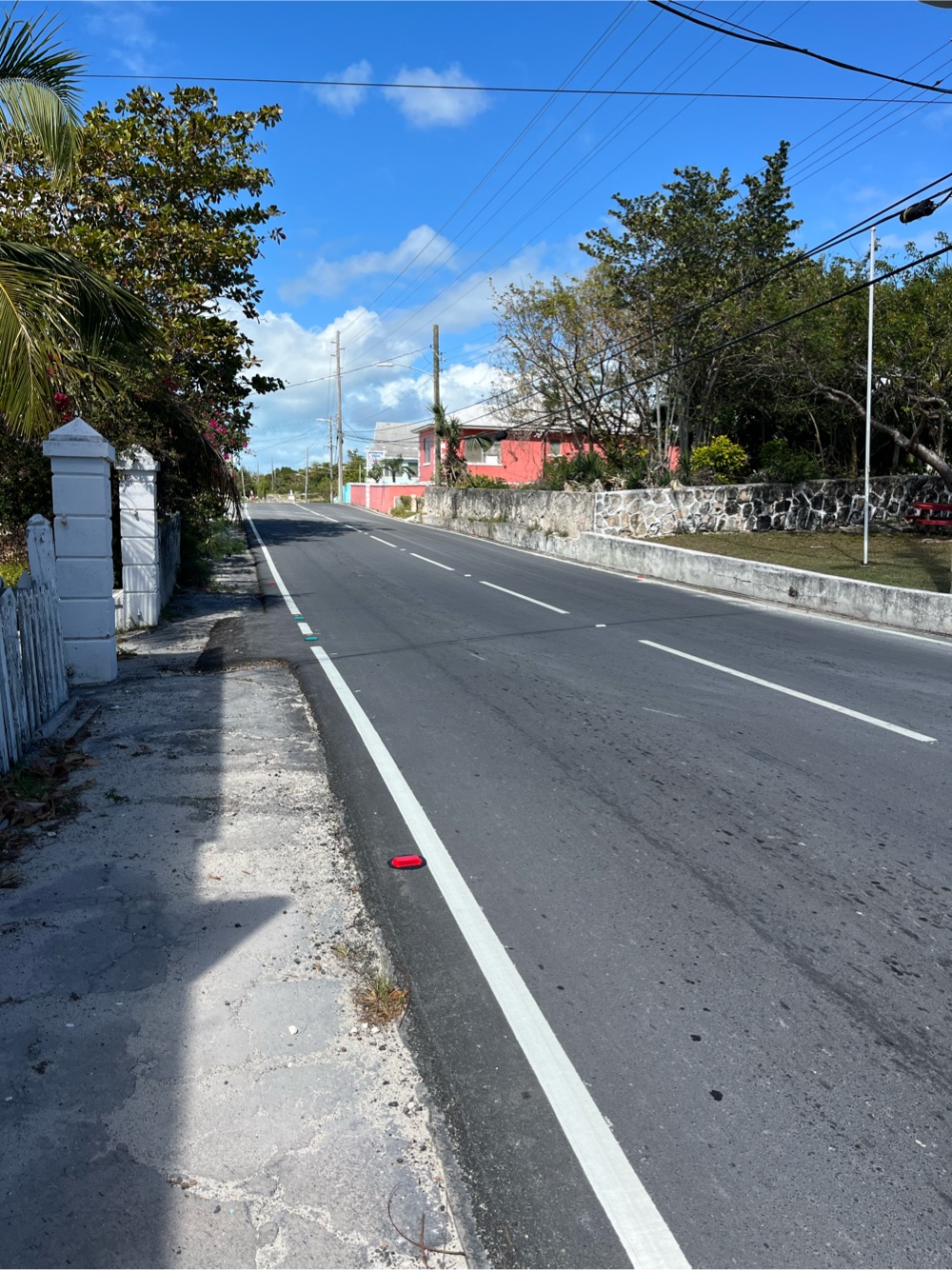 Today was the first day we have stepped off the boat since leaving New Bight, Cat Island four days ago. Normally I would be climbing the walls after staying on the boat more than three days, but since we have been moving every day it hasn’t been so bad. Yesterday we moved from Poison Point to the W side of the Rock Sound harbor in order to get protection from W winds. This morning the wind had moved to the N and calmed down so we moved to the E side of the harbor and dinghied to shore. We dropped our trash at the corral provided near their lovely dock. Then we walked to the grocery store in search of fresh fruit. When we last visited Rock Sound in November their main road was under construction. They have since finished the road and it is probably the nicest road we have seen in the Bahamas. They even installed reflectors! Of course there are still no sidewalks so walking along the busy road can be quite an adventure. After shopping we stopped at Louis Delights for lunch. George has been looking forward to their milkshake, but since they were out of milk he had to settle for ice cream after lunch.