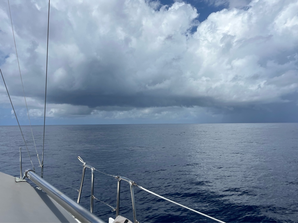 Planning this trip from the Bahamas to the US has seemed especially challenging. Of course it is entirely possible we have forgotten how much we agonized over the timing of other trips. We delayed our departure until today in order to avoid squalls in the Gulf Stream. Even so the forecasts suggested that we still may encounter occasional squalls here and there. George spent the past few days running weather routing models for numerous times of day. What if we left at noon instead of 9AM? How about 1PM? 6AM? 5AM? 4AM? 3AM? Abandon leaving today altogether? In the end we chose leaving the marina at 2:30AM and so far, so good. We expected to pass close to squalls off coast of Fort Pierce, FL and that is exactly what happened. Delaying our departure until today meant we have had very little wind do we may be motoring all the way. We expect to arrive in Georgetown, SC but may change those plans, depending on the weather.